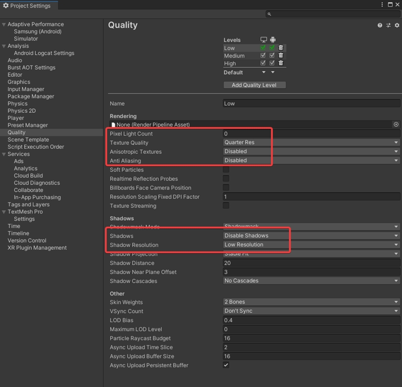 Example of quality setting on low end devices