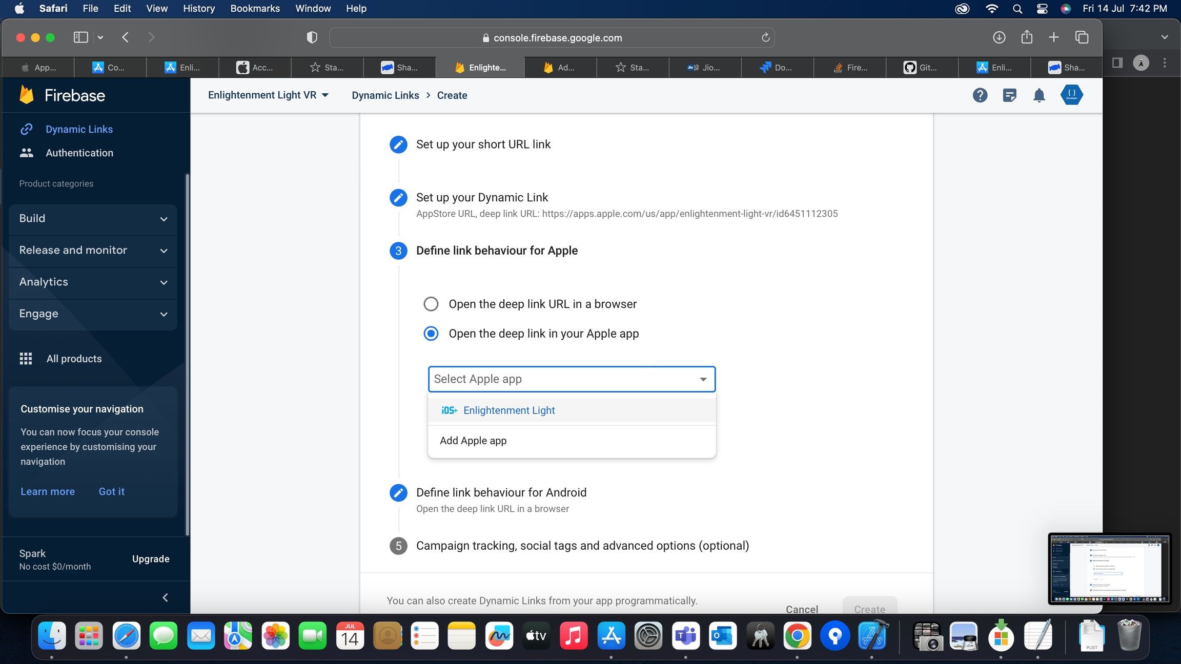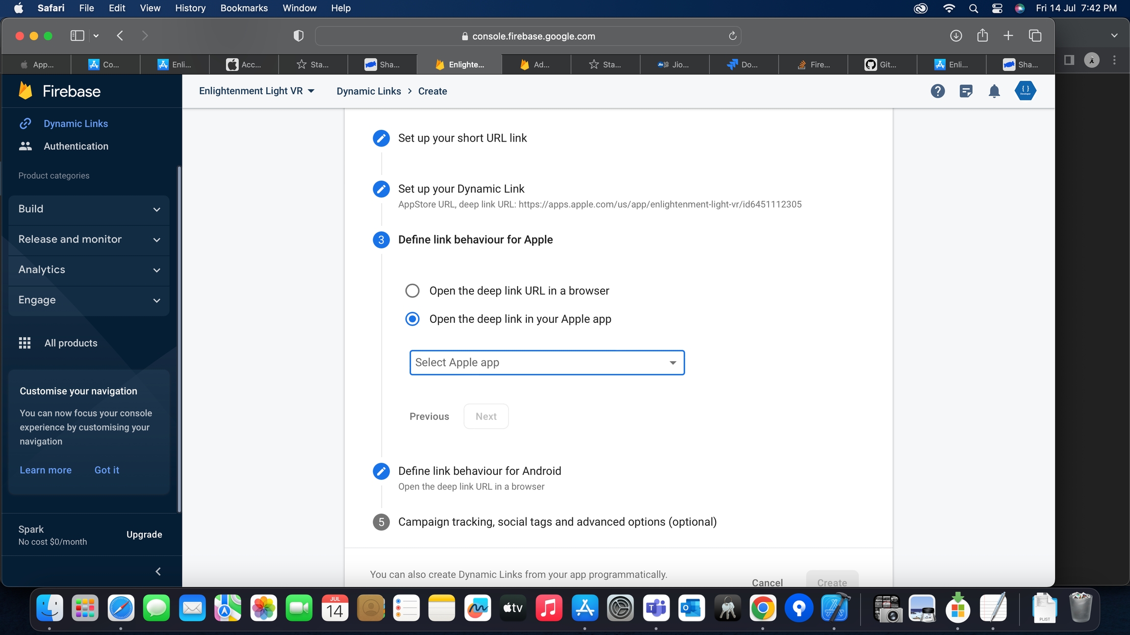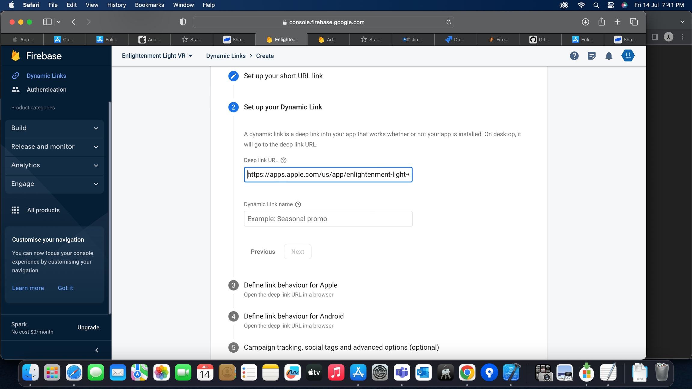 Keep your dynamic link page handy. It will be required in step Xcode II.