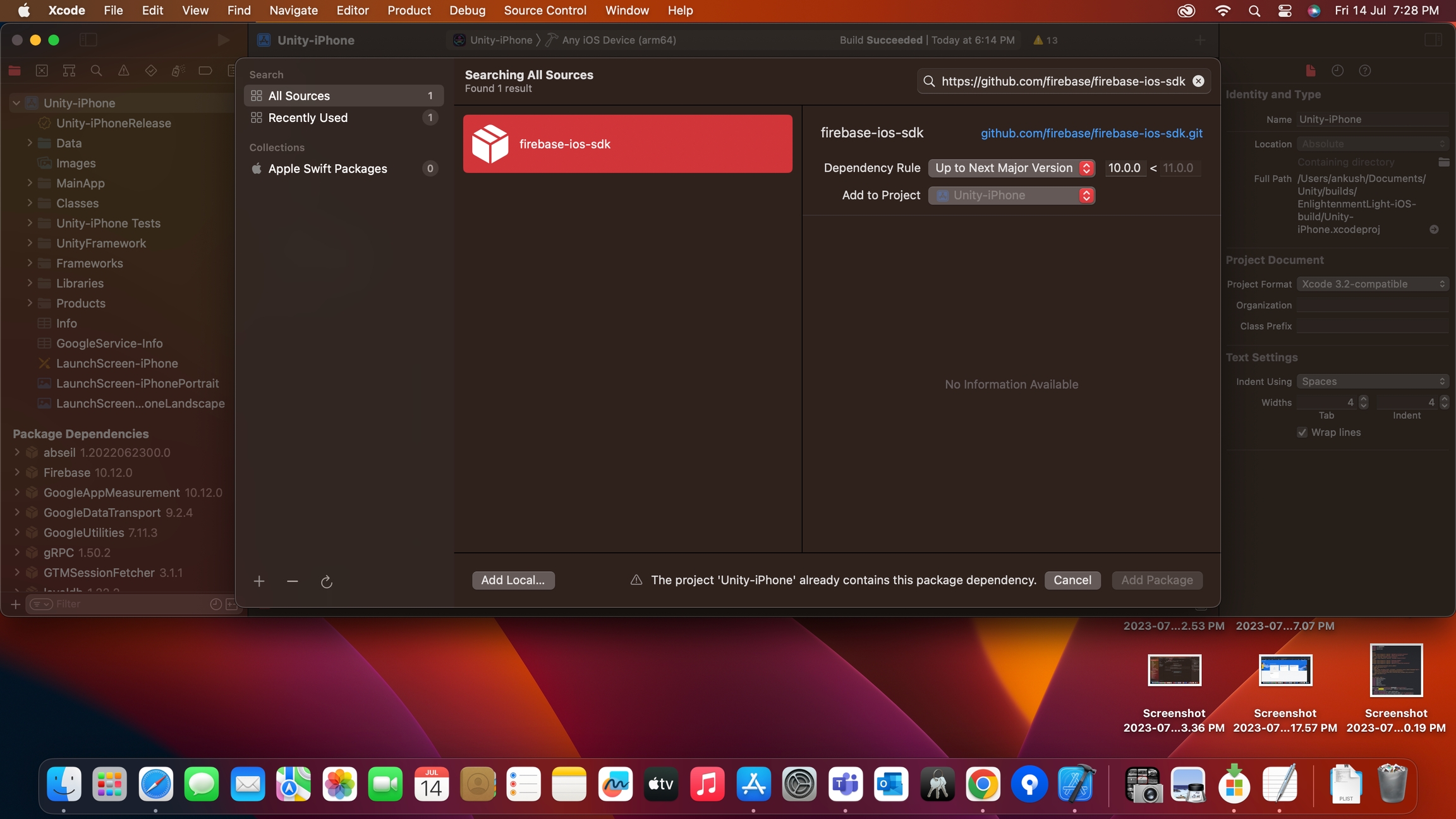 Add the above downloaded GoogleService-Info.plist in Unity-iPhone root folder