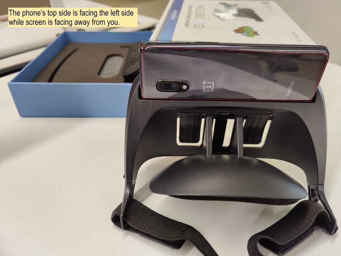 Insert your phone into the Holoboard such that the phone’s top side is facing the left side while the screen is facing away from you.