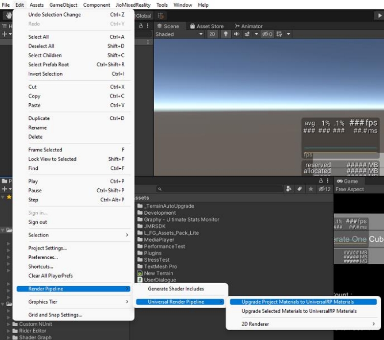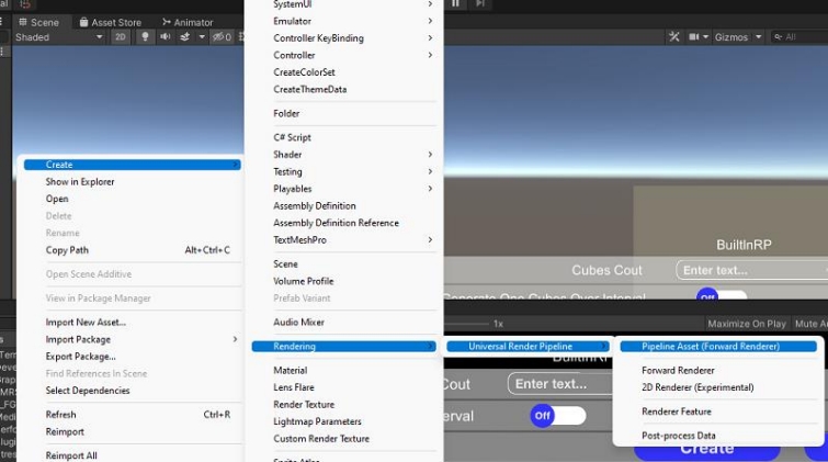 Create UniversalRenderPipeline Asset Right Click in the Asset Folder then Create -> Rendering -> Universal Render Pipeline -> Pipeline Asset (Forward Renderer)