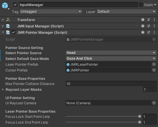 To enable and disable interaction, developers can use JMRPointerManager.Instance.ToggleInteraction(bool, JMRPointerManager.PointingSource.Head)