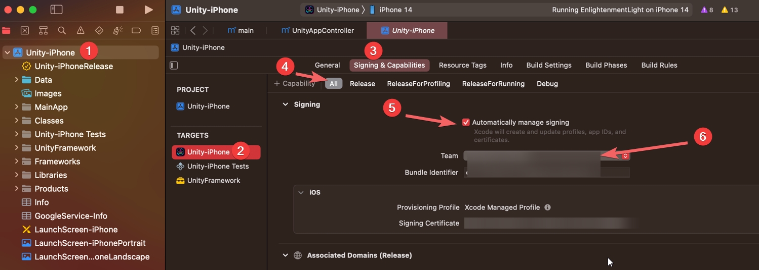 In Build settings > Other settings > Identification > Enable Automatically Sign