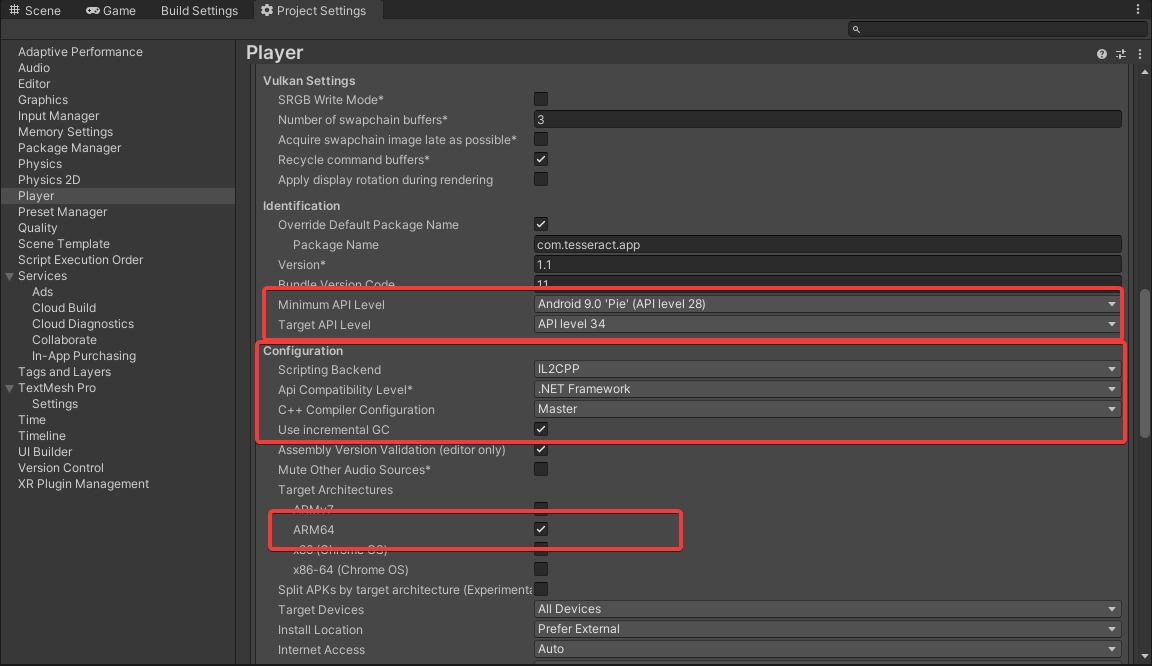 The scripting level backend has to be set to IL2CPP with ARM64 supported.