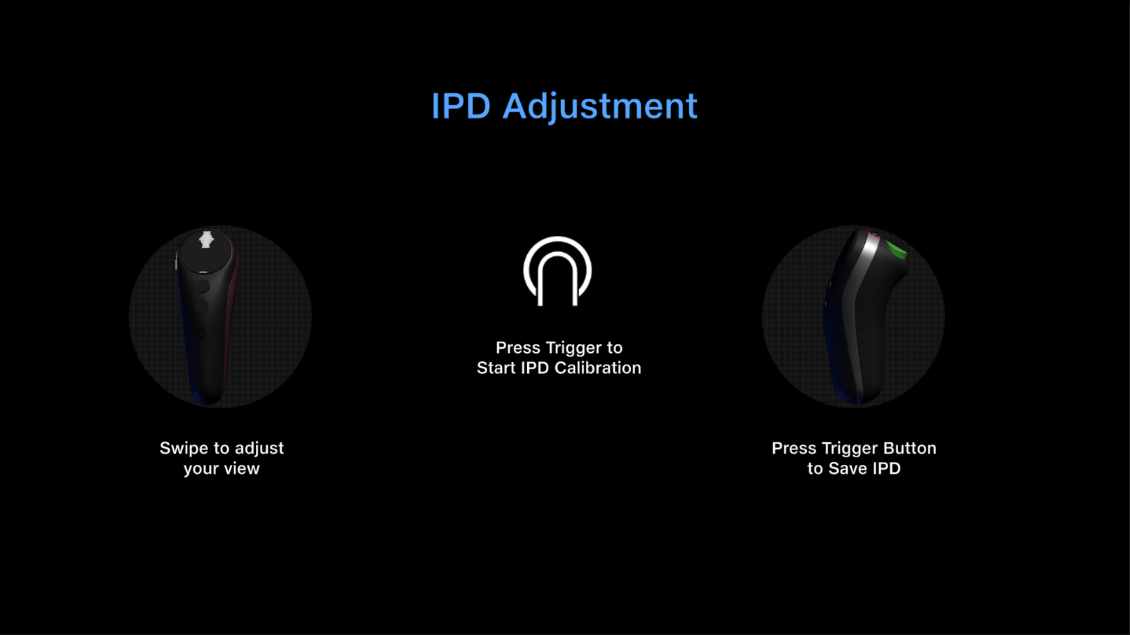 - Once done, press the Trigger button again to close the screen and set your IPD