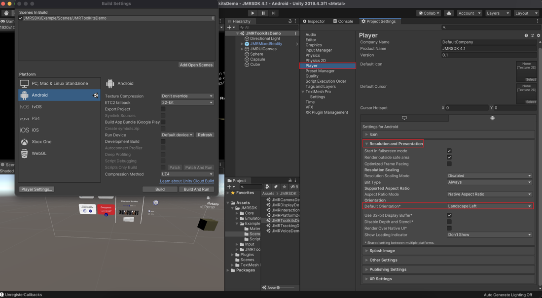 - Under the Resolution and Presentation tab, set the Default Orientation to Landscape Left.