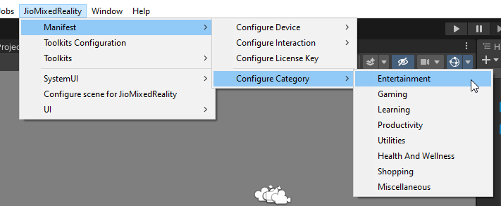 From JMRSDK 4.32.17+ Category selection has been added in JioMixedReality > Manifest > Configure Category dropdown