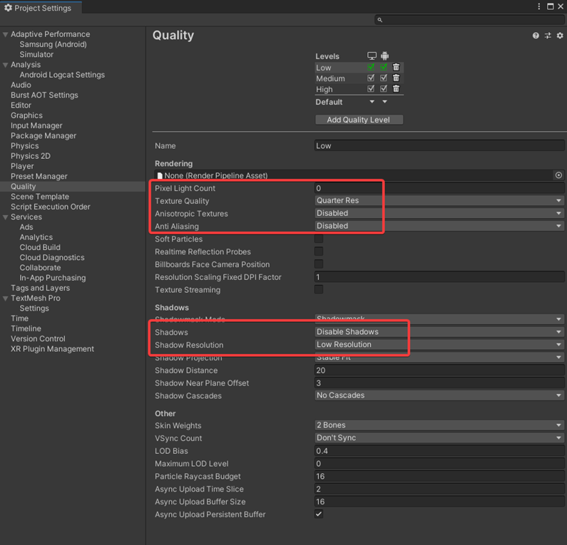 Additionally, the quality settings can be optimized to perform on mobile devices and be interchanged depending on device performance.