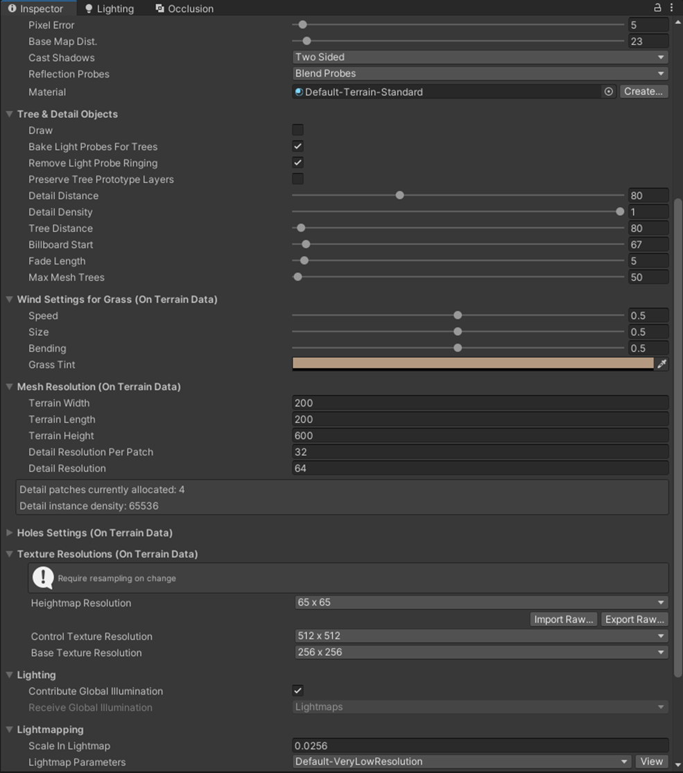 - Trees can be rendered as optimized meshes instead of terrain trees