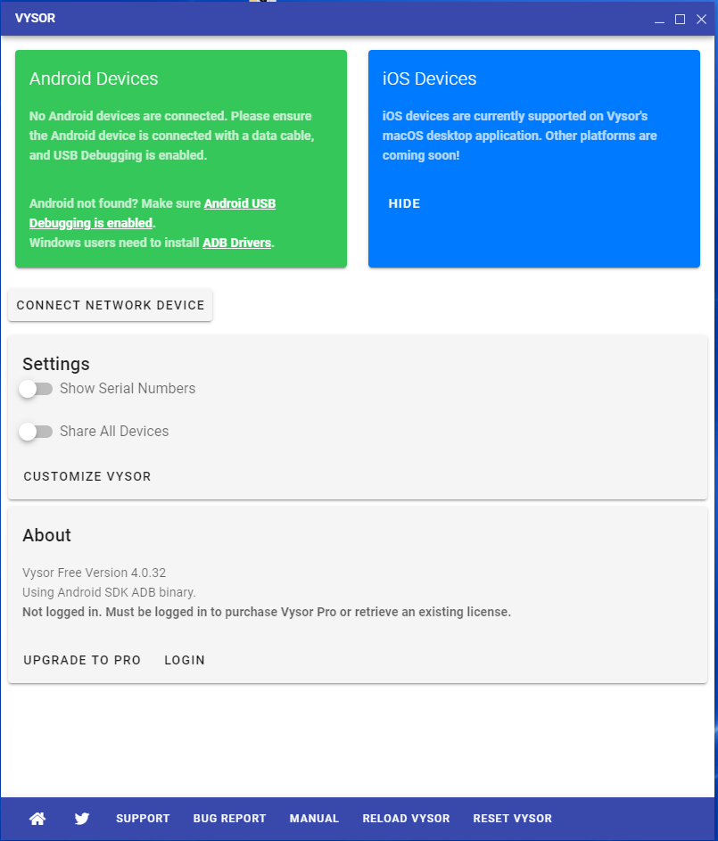 - Download Vysor for your machine OS (Windows/Mac/Linux)