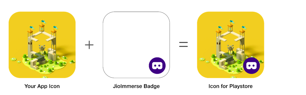 The JioImmerse logo must be incorporated on the right bottom corner of the App icon used on Google Playstore.