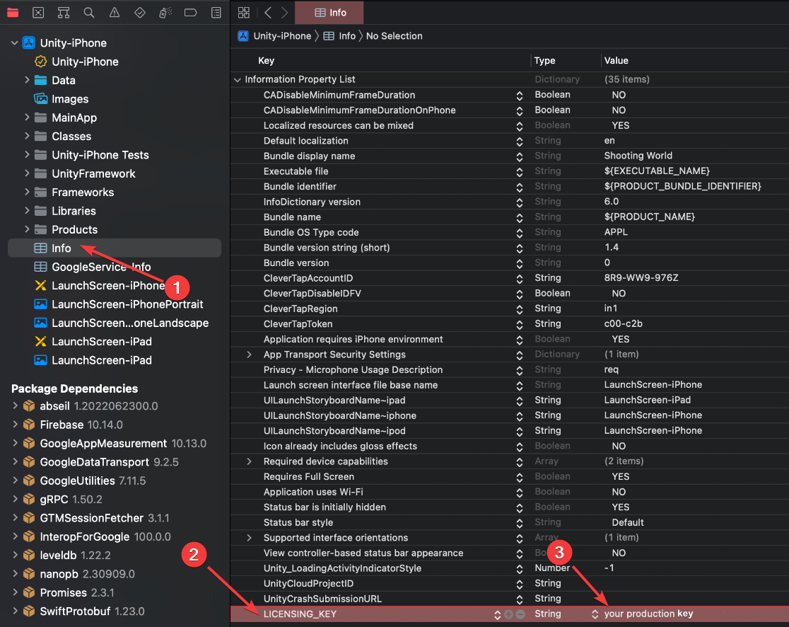 Enter the Production Key that you got from the JioImmerse Developer Console as the value for the LICENSING_KEY field.