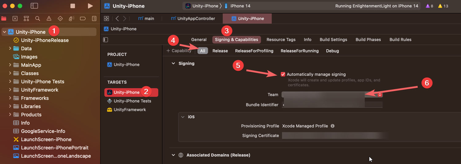 In Build settings > Other settings > Identification > Enable Automatically Sign