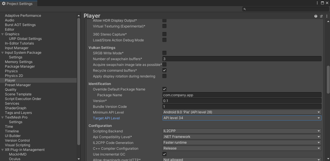 Fix: Make sure that the minimum API level is set to 28 and the target API level is set to 34.