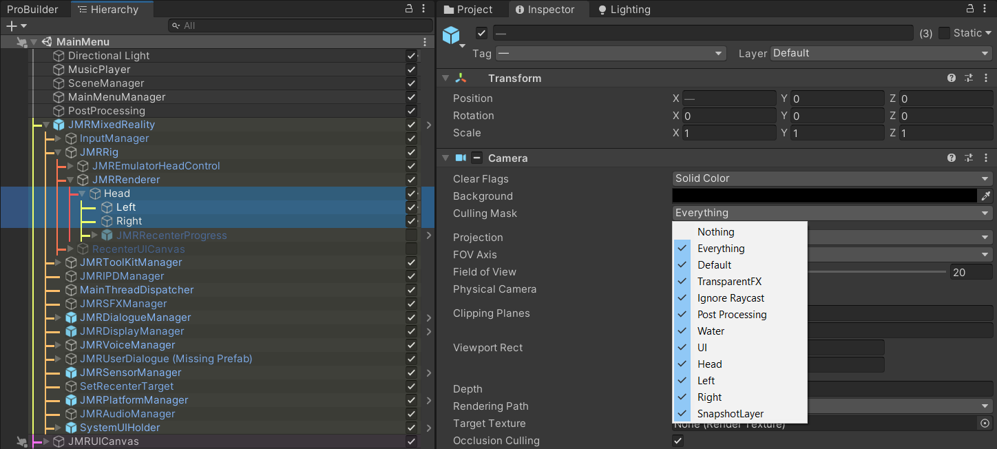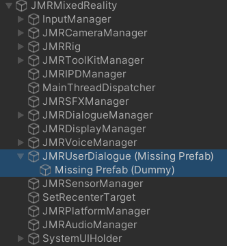 - Make sure that your gameobjects are not named as "Head" or "Left" or "Right" other than the ones present in JMRMixedReality prefab by default.